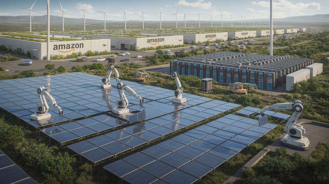 Een van de meest sprekende voorbeelden is Maximo, een robot die in samenwerking met energiebedrijf AES werd ontwikkeld. Deze machine gebruikt AI om zonnepanelen met precisie te plaatsen. Het resultaat? Een veiliger bouwproces dat niet alleen sneller verloopt, maar ook de kosten tot de helft kan terugdringen. Voor Amazon is dit hét bewijs dat AI kan helpen om grootschalige duurzame infrastructuur op een efficiëntere manier te bouwen.