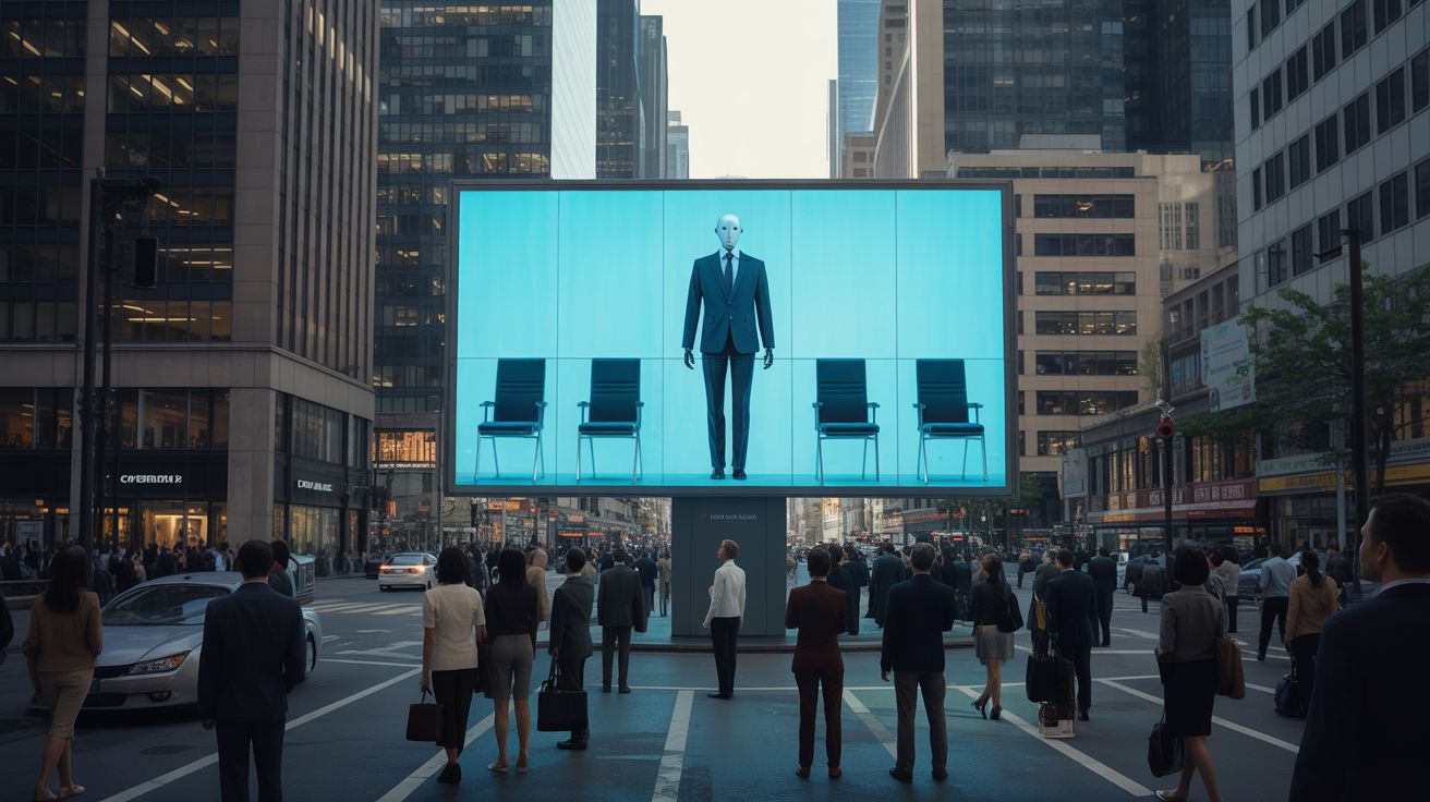 Op een drukke werknemerstraat in een grote stad verscheen een opvallend billboard, ingericht door een AI-bedrijf. De tekst: “Mensen zijn niet langer noodzakelijk”. Hiermee verwees de campagne naar de website Replacement.AI – een platform dat vol trots stelt dat menselijke arbeid binnenkort overbodig zal zijn. Voor veel voorbijgangers kwam de boodschap als een schok. Het beeld oproepen om weg te koppen van mensen: een provocatie, bewust of onbewust.