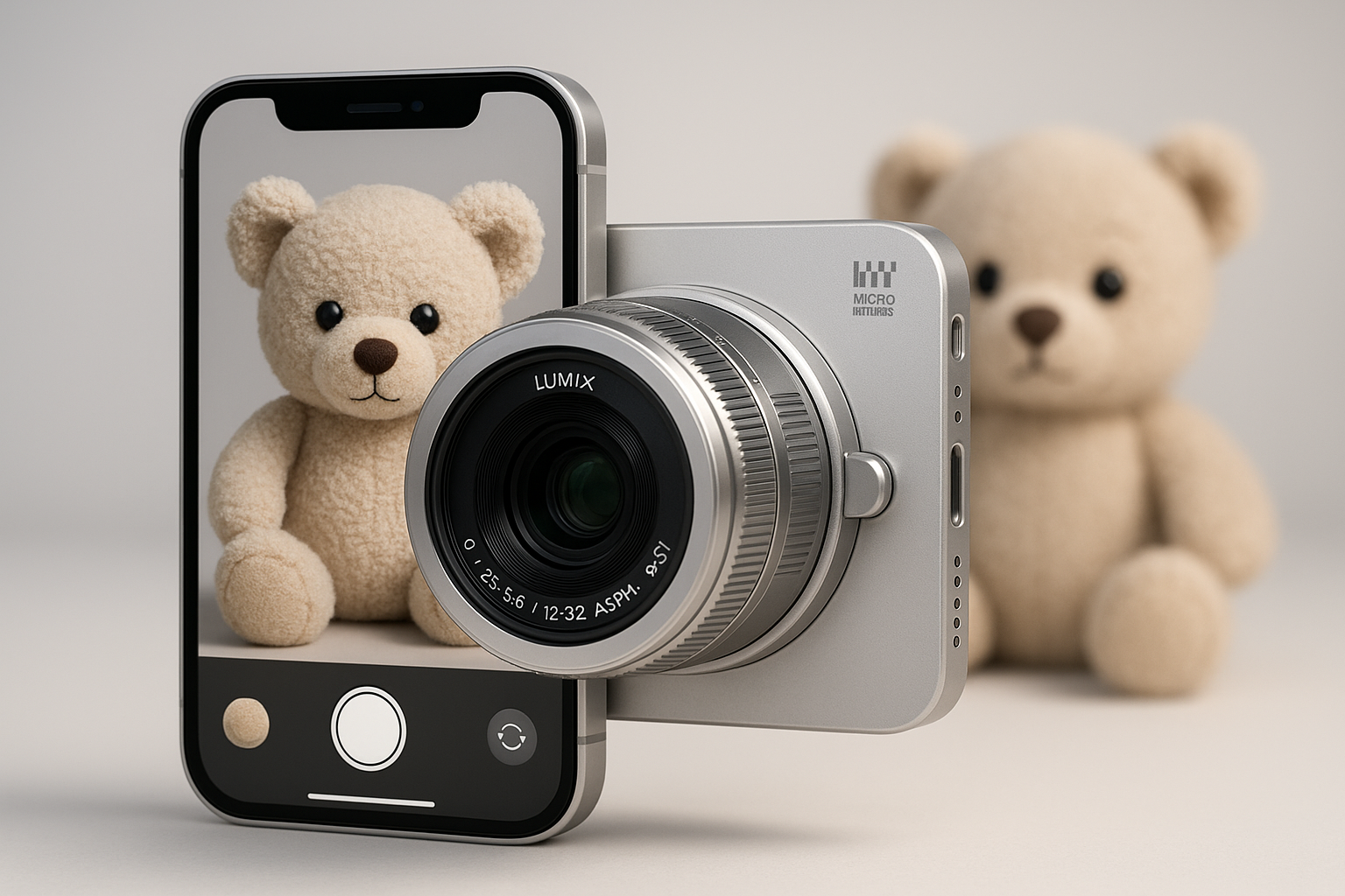 In een video-review van content-maker Emily Lowrey (Micro Four Nerds) wordt aangetoond dat de camera met stemcommando’s het onderwerp binnen het kader kan veranderen – en dat met verbluffende precisie. Zo fotografeert Lowrey een knuffel en laat vervolgens de AI een andere knuffel uitbeelden, waarna het eindresultaat nauwelijks van echt te onderscheiden is. De vraag die opkomt: als bediener en camera zo sterk samensmelten met AI, is hetgeen je vastlegt dan nog wel “fotografie” in de klassieke betekenis?
