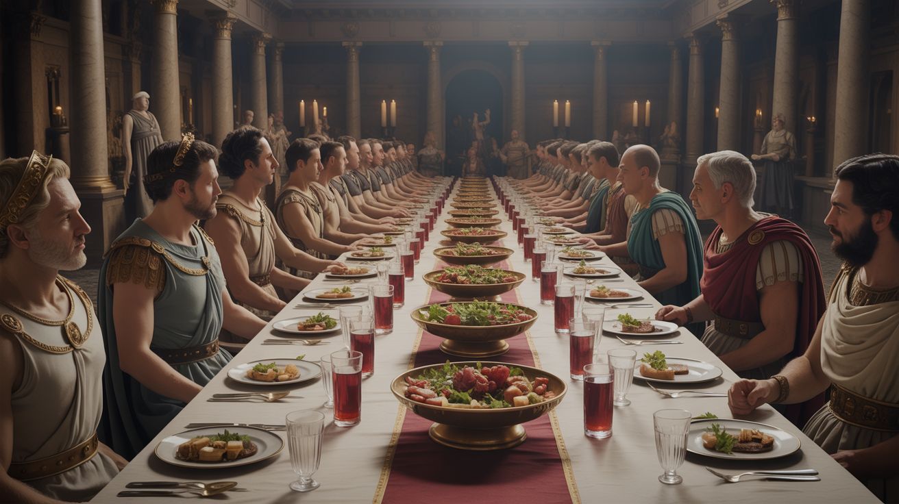 Tijdens het laden van het spel stuitten spelers op één specifieke afbeelding: een banketzaal met Romeinse figuren, druk in gesprek, maar bij nadere inspectie duidelijk gekenmerkt door visuele afwijkingen die doen denken aan computergegenereerde kunst — wazige gezichten, vervormde ledematen, onlogische lichtinval.