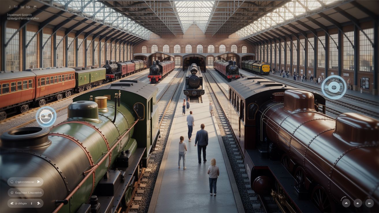 Je wandelt door de Main Hall, aanschouwt treinen op ware grootte en bezoekt de New Hall, een reconstructie van een typische historische locomotievenloods. Zelfs de beroemde Brusselton Incline — deel van de allereerste openbare spoorlijn uit 1825 — is digitaal te verkennen.