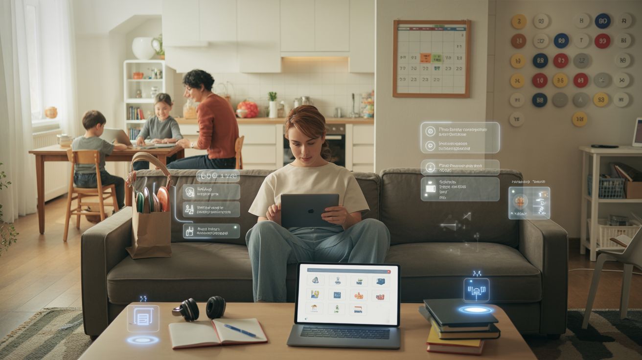 Kelly MacLean, Vice President bij Amazon Ads, balanceert een druk gezinsleven met meerdere agenda’s. Met een AI-‘family operating system’ koppelt ze kalenderapps, activiteiten, herinneringen en suggesties (zoals workouts en maaltijden) aan elkaar. Wat eerst stress was, wordt nu overzicht en rust.