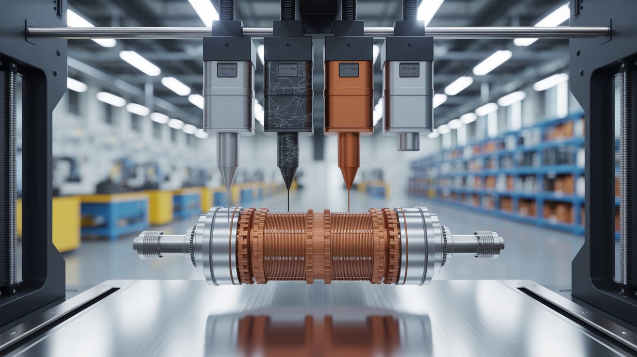De kern van de innovatie is een multimateriaal 3D-printer die niet alleen kunststof kan verwerken, maar ook elektrisch geleidende en magnetische materialen. Met vier verschillende extruders — elk geschikt voor een ander type materiaal — schakelt het systeem tijdens het printproces automatisch tussen materialen. Zo ontstaat in lagen een volledig functionele elektrische motor, zonder dat meerdere machines of complexe assemblagestappen nodig zijn.