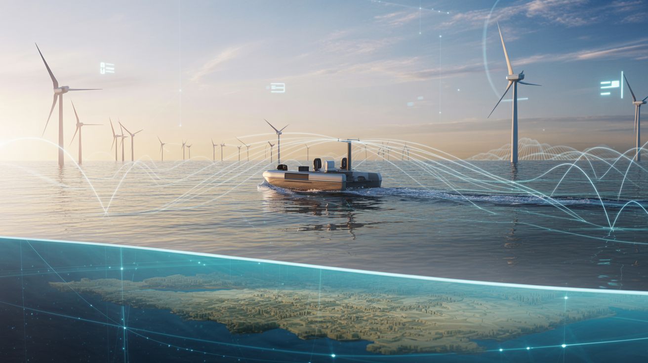 En terwijl windturbines steeds verder op zee verschijnen, groeit ook de digitale kaart van de oceaan — stukje bij beetje, gestuurd door data.
